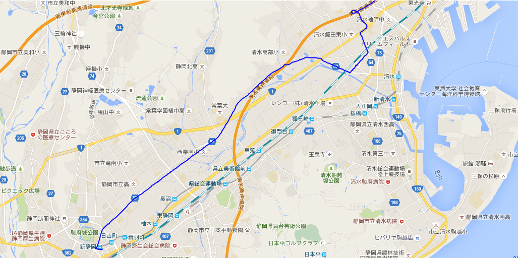 ・清水ICから新静岡まではこのようなルートを走行します